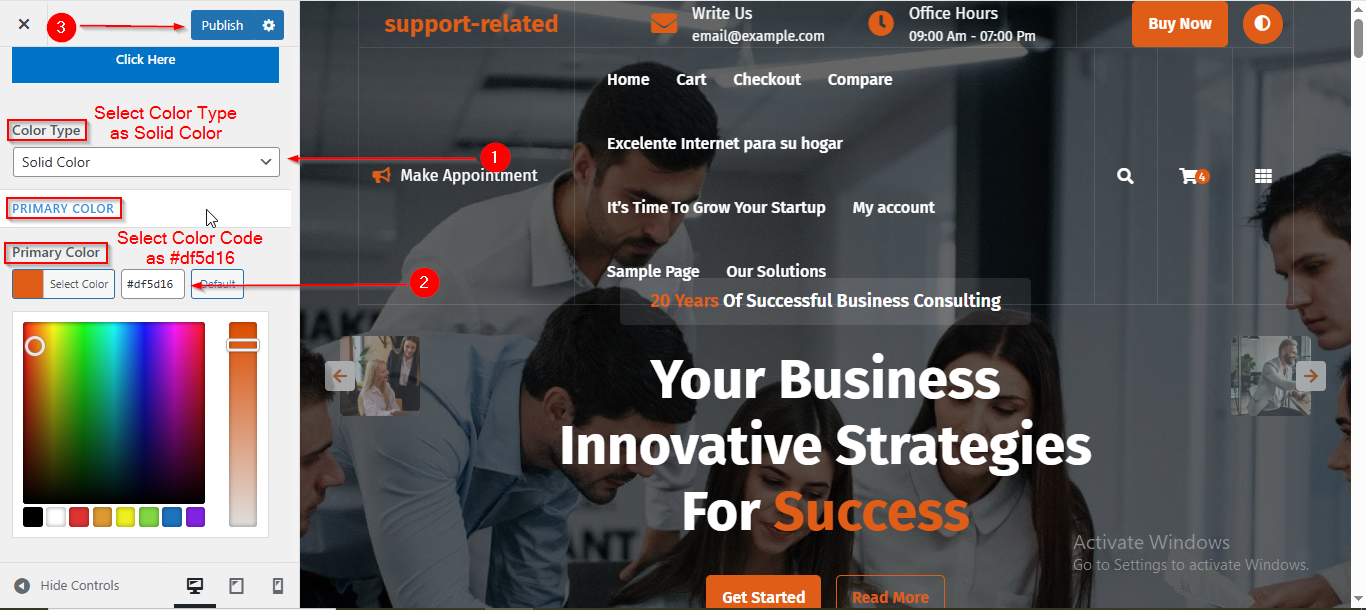 - On the Customizer page, go to Style Configurator > Theme Color.