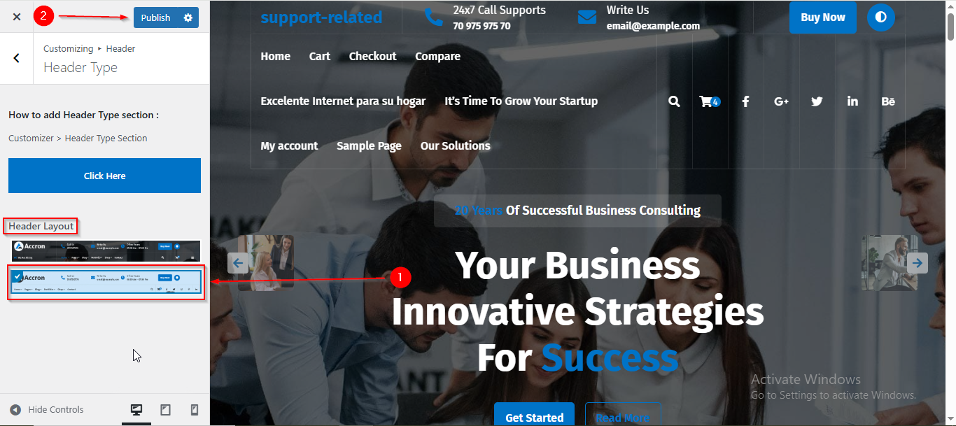 Setting up the Acronix theme in Accron Pro is simple since the primary differences lie in the Header Type and Color Scheme. Let’s walk through these steps: