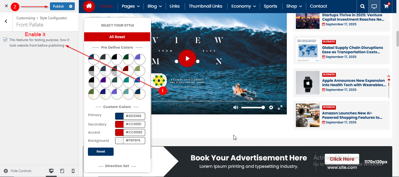 In this article, you’ll learn how to set up and customize the Style Configurator of the News 25 Pro theme, This guide will help you configure these settings to align with your site’s branding and functionality needs.