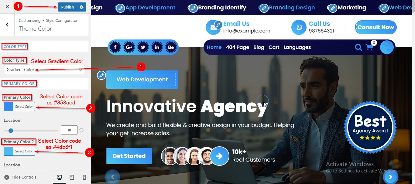 - On the Customizer page, go to Style Configurator > Theme Color.